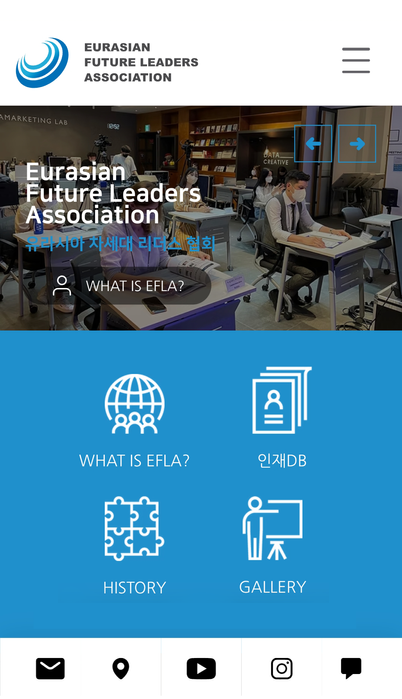 유라시아 차세대 리더스 협회 (EFLA) 공식 웹사이트는 유라시아 지역 청년들이 보다 적극적으로 협력할 수 있도록 다양한 기능을 결합하여 구축되었으며, 이를 통해 직관적인 사용자 경험과 효율적인 정보 전달하는 디지털 플랫폼으로서의 역할을 고려하여 디자인되었습니다. 특히, 국내 유라시아 청년 네트워크 형성을 위한 인적 DB 구축을 위해 Wix의 CMS 기능을 적극 활용하였으며, 이를 통해 유라시아 지역과 협력을 도모하는 인재 풀을 체계적으로 확장하는 데 기여하도록 설계되었습니다. 웹사이트는 Wix의 다양한 기능을 전략적으로 활용하여 정보 접근성을 극대화하였습니다. 게시판 기능을 통해 공지사항을 효과적으로 전달하고, 블로그 기능을 활용하여 다채로운 문화 행사 및 체험을 실시간으로 소개하였습니다. 또한, 이벤트 및 채팅 서비스를 적용하여 청년 간 교류를 더욱 활성화하고, 자연스러운 네트워킹이 가능합니다.